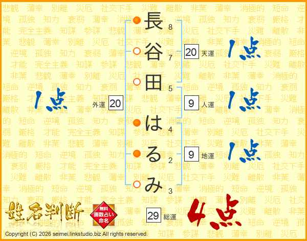 長谷田はるみさんの総運は29画の4点!