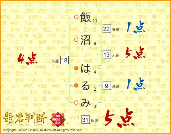 飯沼はるみさんの総運は31画の5点!