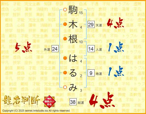 駒木根はるみさんの総運は38画の4点!