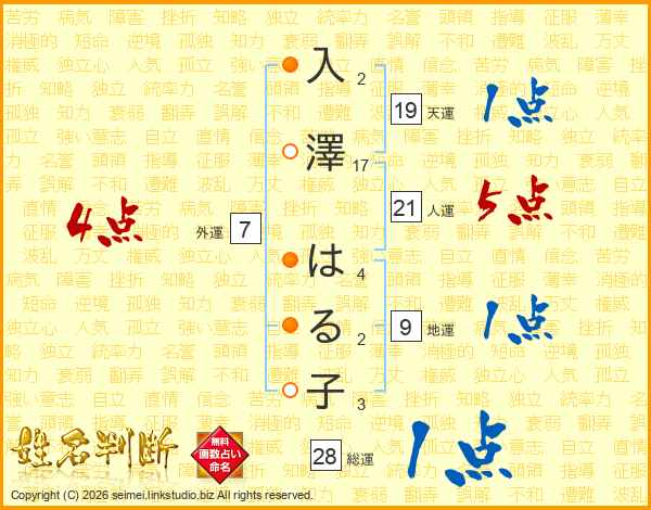 入澤はる子さんの人運は21画の5点!