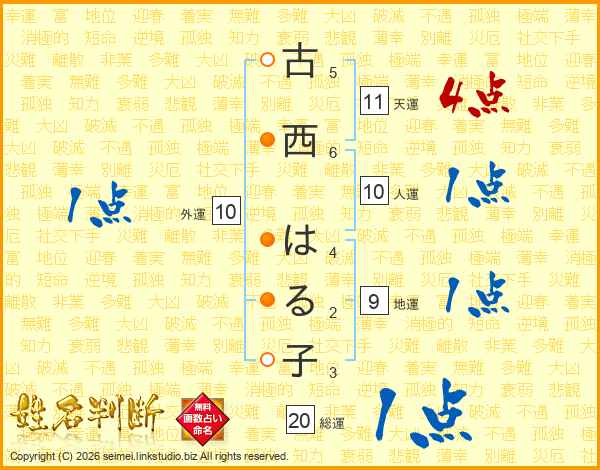 古西はる子さんの天運は11画の4点!