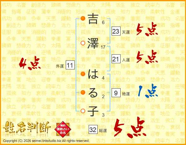 吉澤はる子さんの総運は32画の5点!