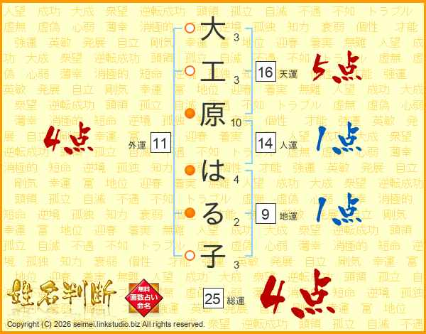 大工原はる子さんの総運は25画の4点!