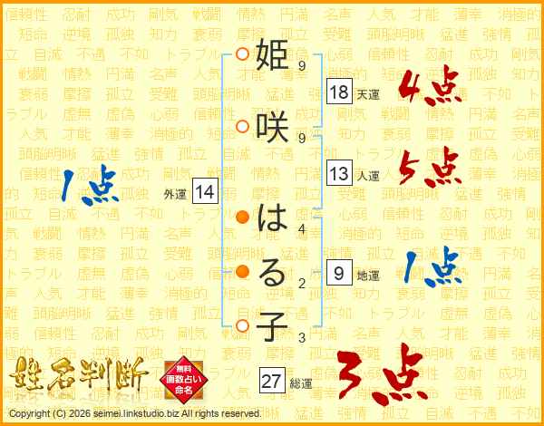 姫咲はる子さんの天運は18画の4点!