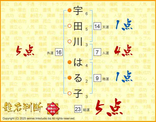 宇田川はる子さんの総運は23画の5点!