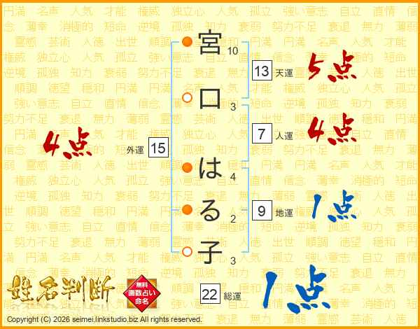 宮口はる子さんの外運は15画の4点!