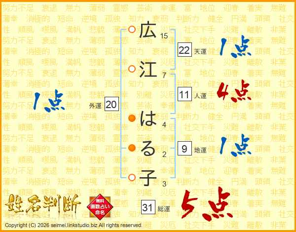 広江はる子さんの総運は31画の5点!