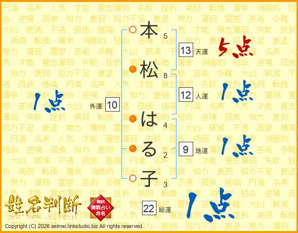 本松はる子さんの総運は22画の1点!