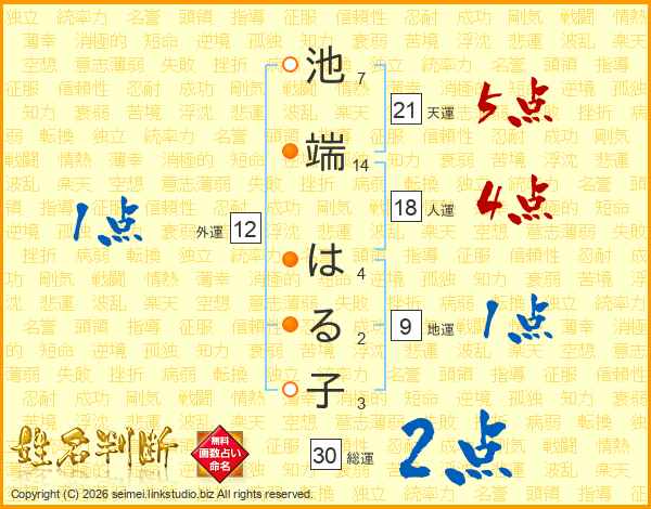 池端はる子さんの総運は30画の2点!