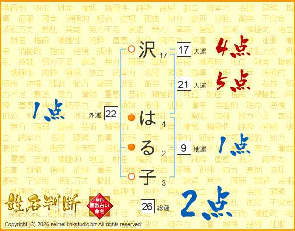 沢はる子さんの総運は26画の2点!