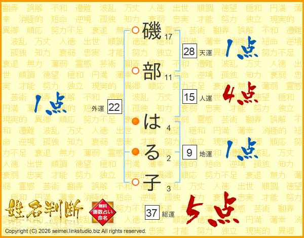 磯部はる子さんの総運は37画の5点!