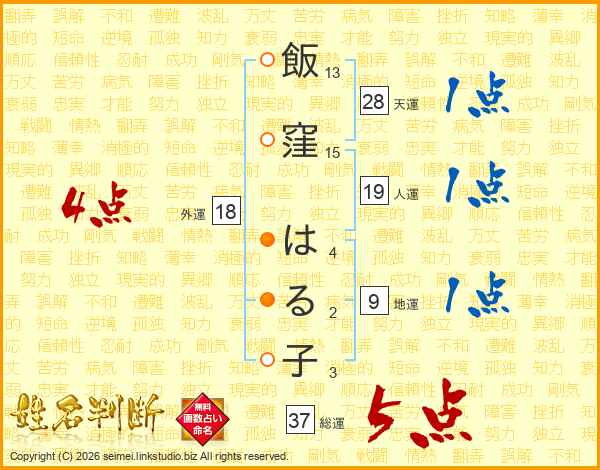 飯窪はる子さんの総運は37画の5点!