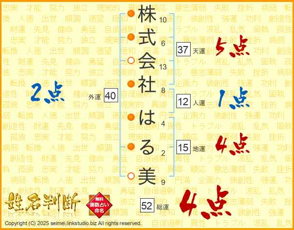 株(10画)式(6画)会(13画)社(8画) は(4画)る(2画)美(9画)