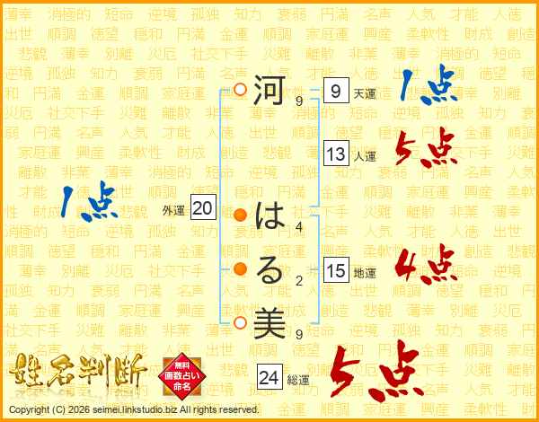 河はる美さんの総運は24画の5点!