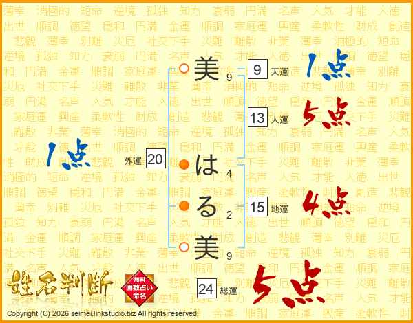 美はる美さんの総運は24画の5点!
