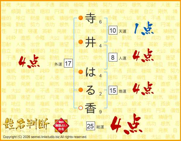 寺井はる香さんの総運は25画の4点!