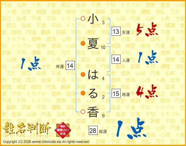 小夏はる香さんの外運は14画の1点!