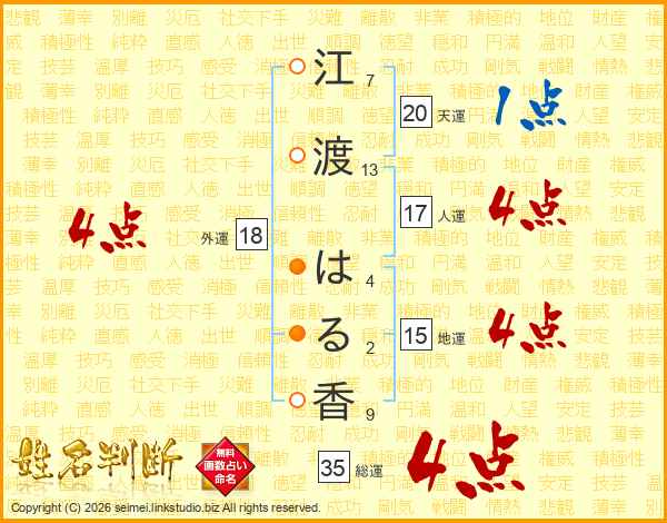 江渡はる香さんの外運は18画の4点!