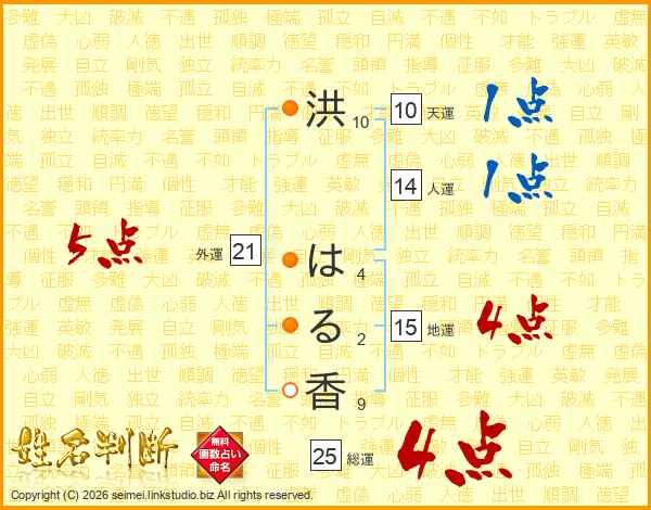 洪はる香さんの総運は25画の4点!