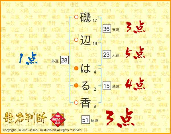 磯辺はる香さんの総運は51画の3点!
