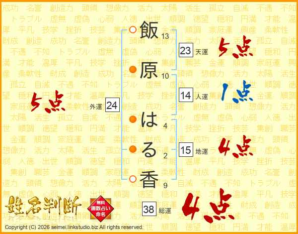 飯原はる香さんの総運は38画の4点!