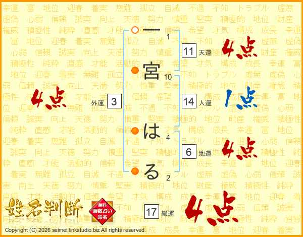 一宮はるさんの総運は17画の4点!
