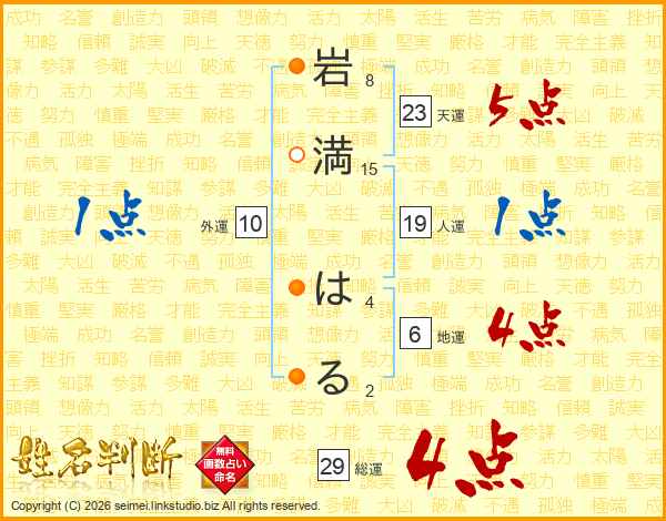 岩満はるさんの総運は29画の4点!