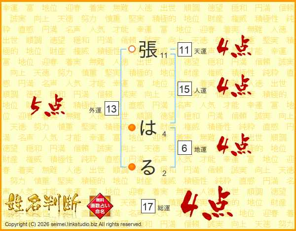 張はるさんの総運は17画の4点!