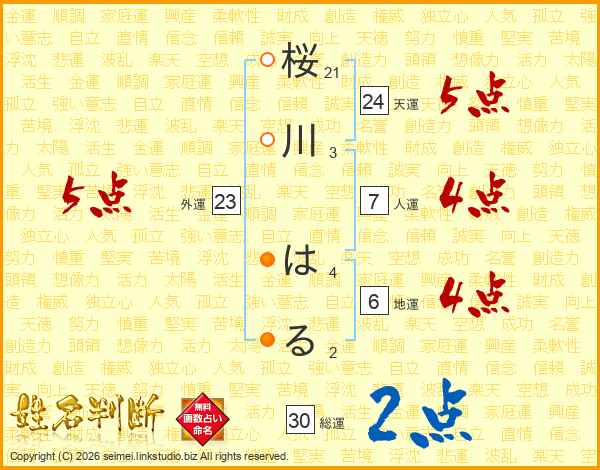 桜川はるさんの総運は30画の2点!