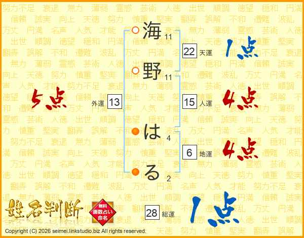 海野はるさんの総運は28画の1点!