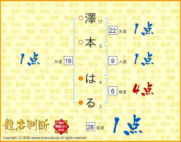 澤本はるさんの総運は28画の1点!