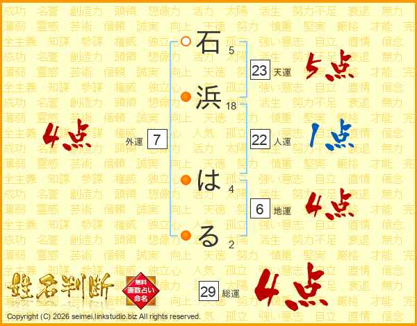 石浜はるさんの総運は29画の4点!