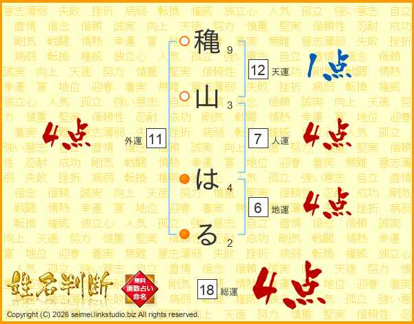 穐山はるさんの総運は18画の4点!