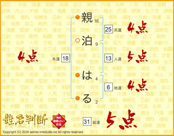 親泊はるさんの総運は31画の5点!
