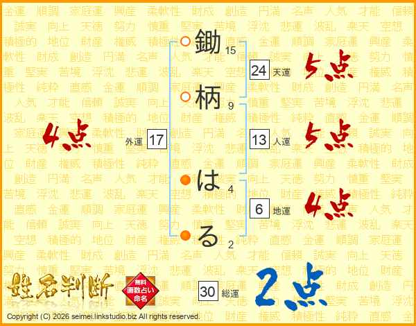 鋤柄はるさんの総運は30画の2点!