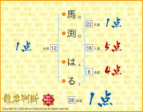馬渕はるさんの総運は28画の1点!