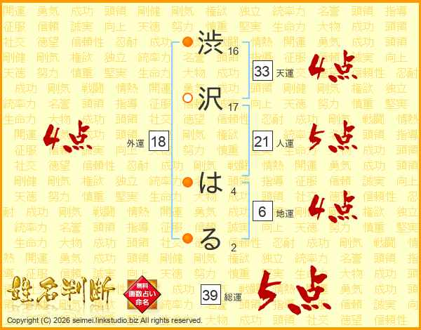 渋沢はるさんの天運は33画の4点!