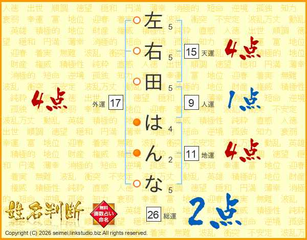 左右田はんなさんの総運は26画の2点!