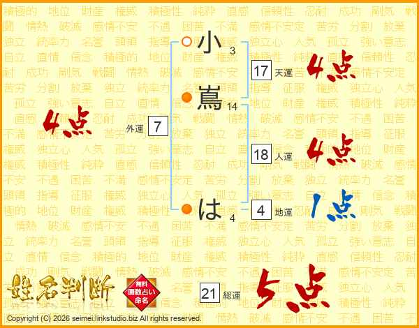 小嶌はさんの総運は21画の5点!