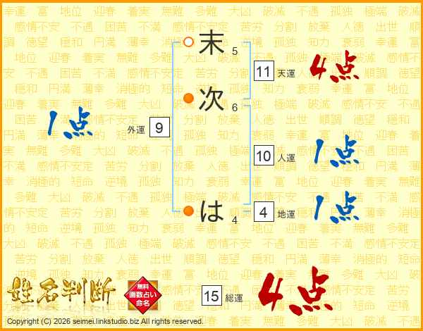 末次はさんの天運は11画の4点!