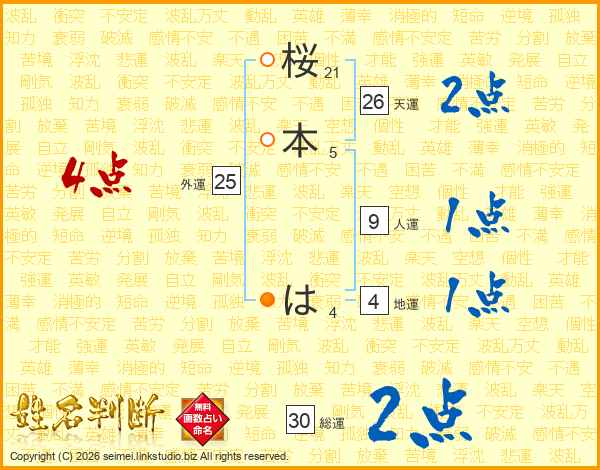 桜本はさんの総運は30画の2点!