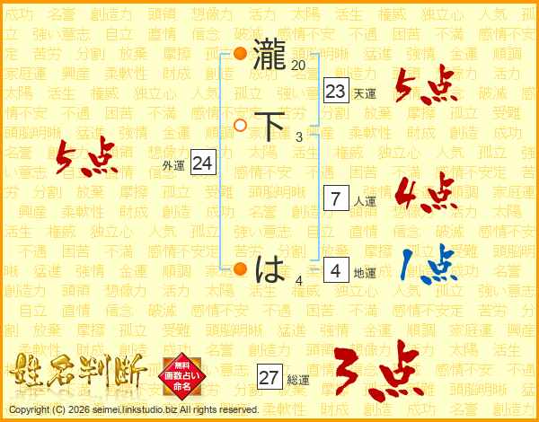 瀧下はさんの総運は27画の3点!