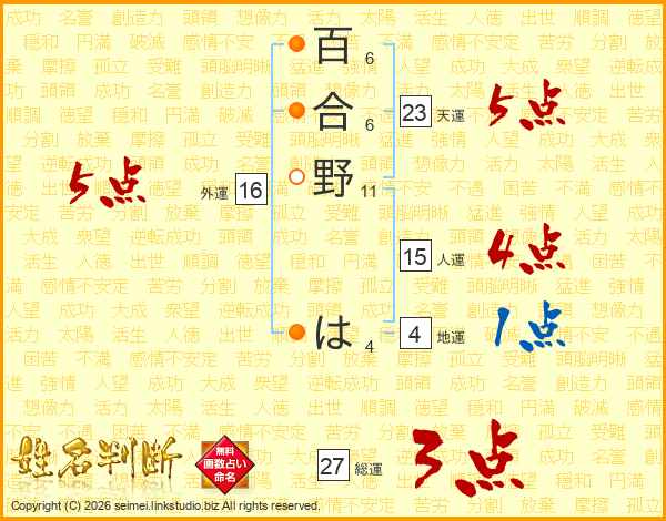 百合野はさんの総運は27画の3点