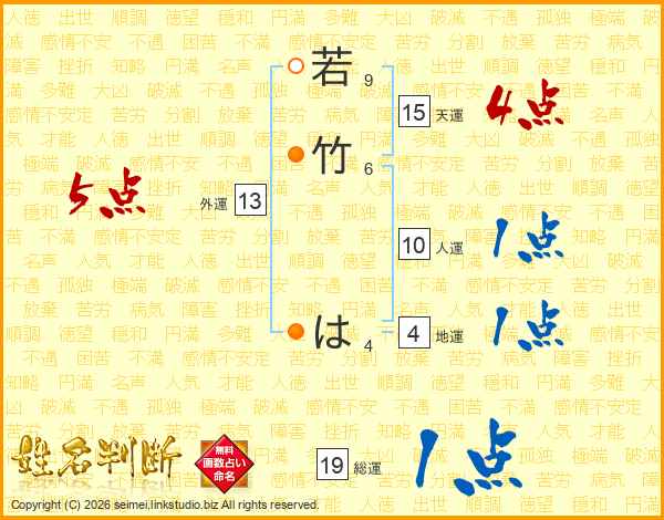 若竹はさんの総運は19画の1点!