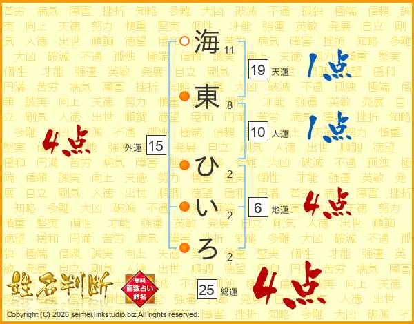 海東ひいろさんの総運は25画の4点!