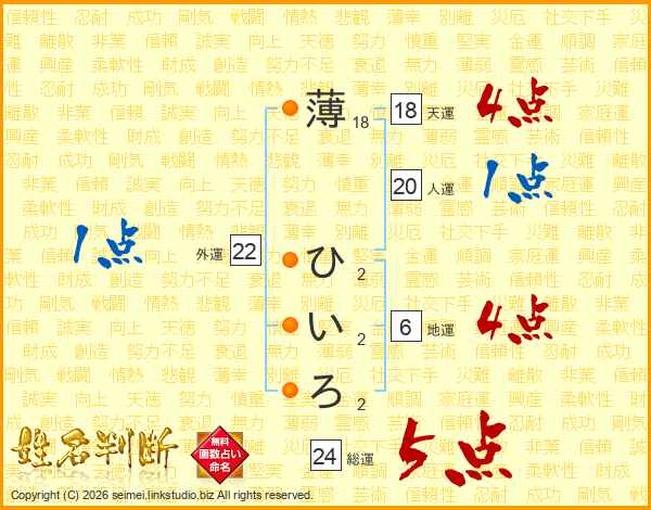 薄(18画) ひ(2画)い(2画)ろ(2画)