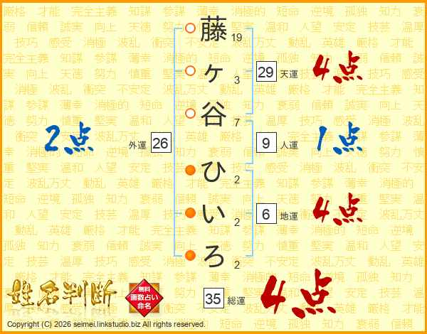 藤ヶ谷ひいろさんの総運は35画の4点!