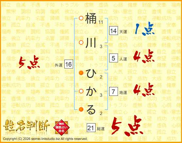桶川ひかるさんの外運は16画の5点!