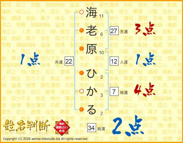 海老原ひかるさんの総運は34画の2点!