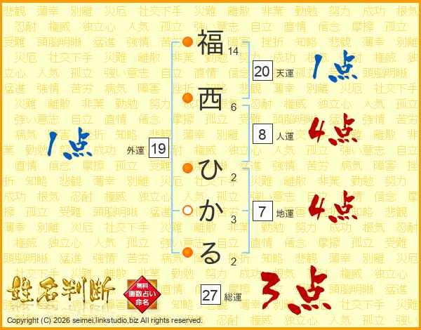 福西ひかるさんの天運は20画の1点!